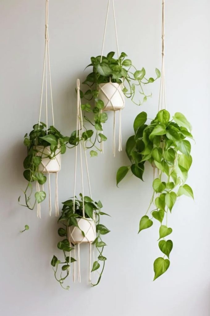 If floor space is limited, make use of walls and ceilings. Hanging planters, vertical gardens, or wall-mounted pots can add greenery without crowding your space. String of Pearls or Boston Ferns work beautifully in hanging planters, adding dimension and movement to your interiors.
