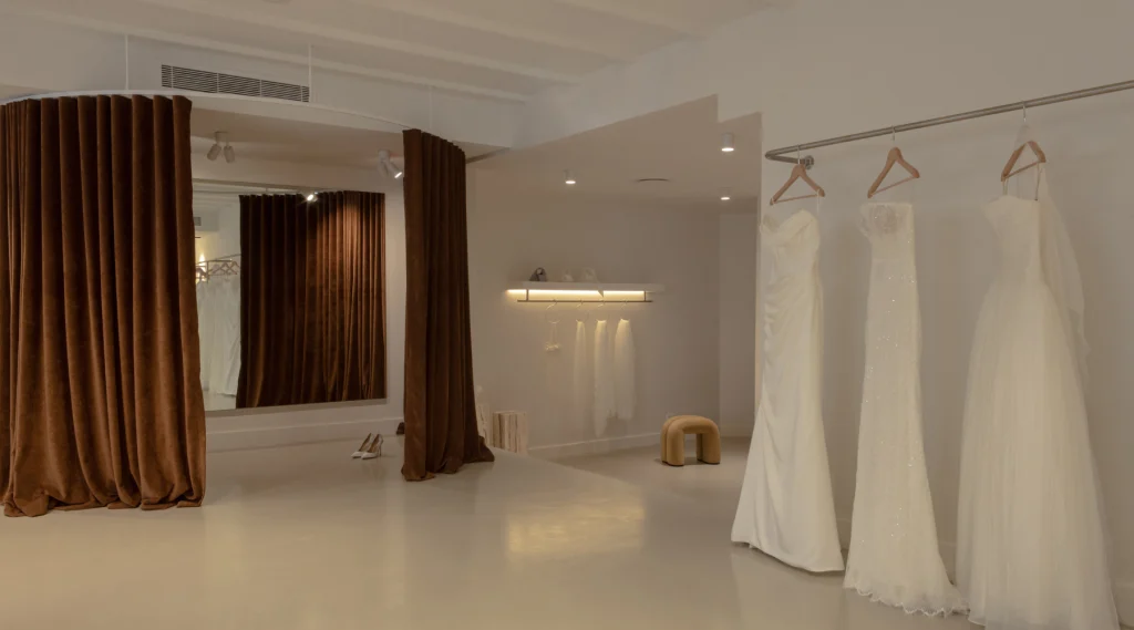 After our initial consultation with Founder Bianca, our intention was clear: to create a calm, welcoming environment that felt elevated and deeply considered from the moment you step inside. A space that allowed brides to feel instantly at ease and taken care of, while functioning seamlessly as a working boutique.