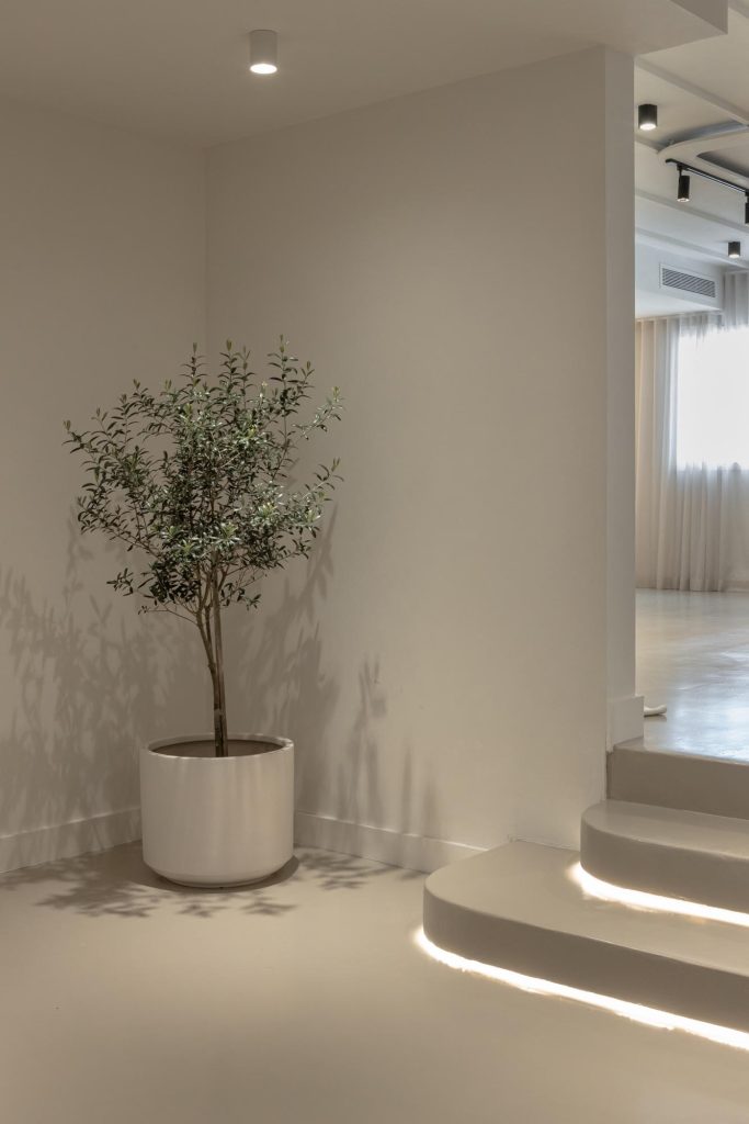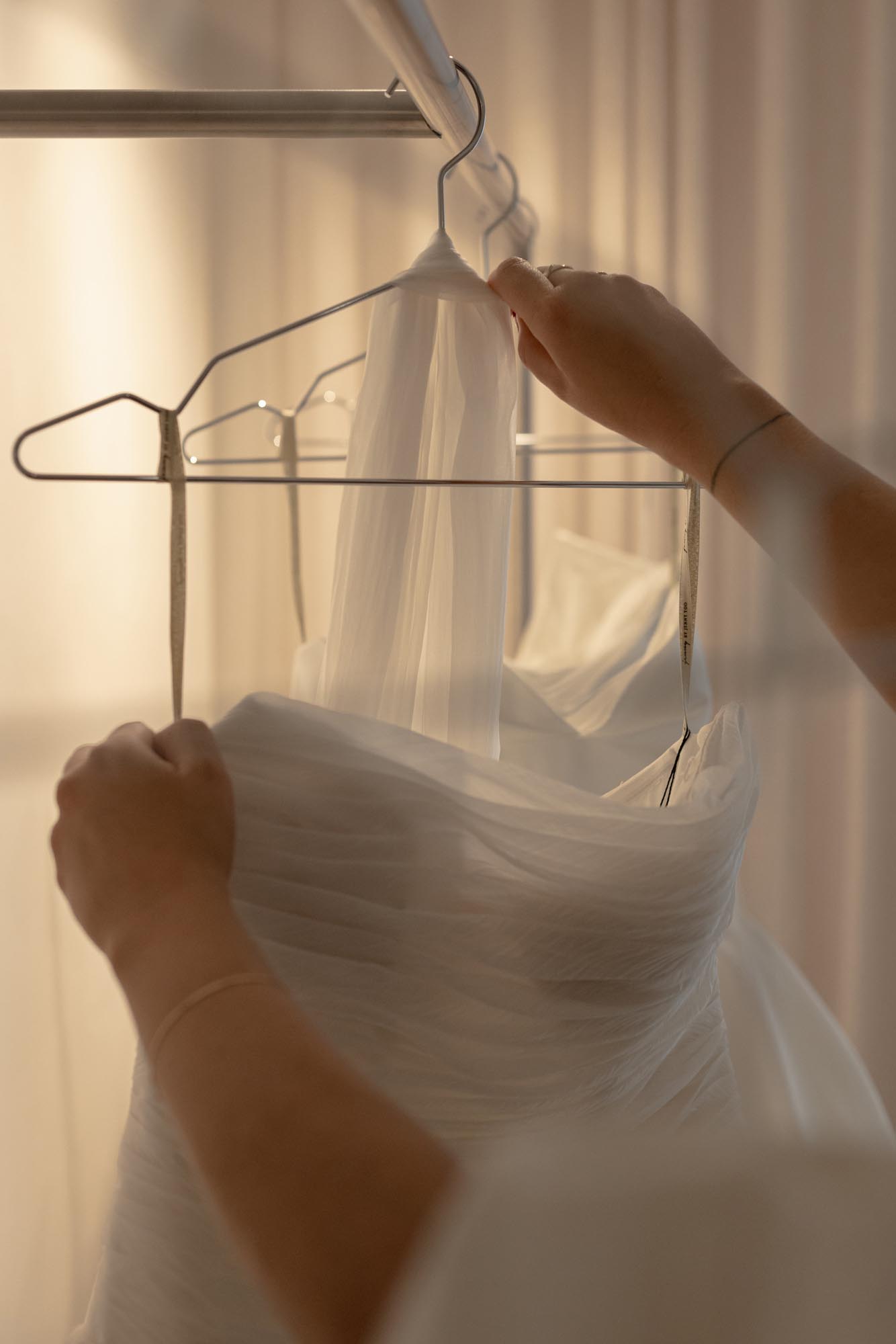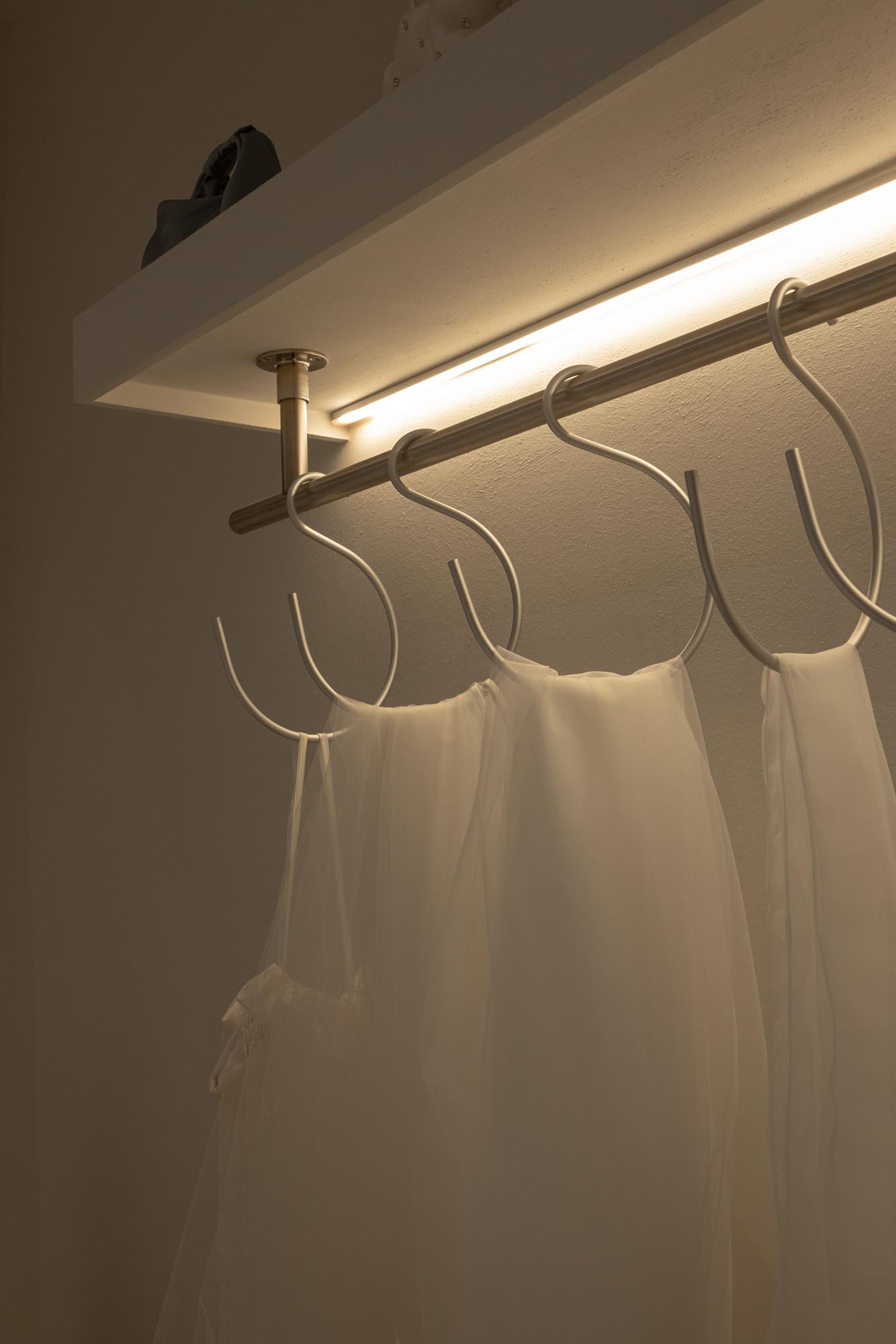 Lighting was carefully considered to flatter both the gowns and the brides wearing them. A layered lighting scheme combines soft ambient light with feature lighting to introduce warmth and intimacy throughout the boutique.